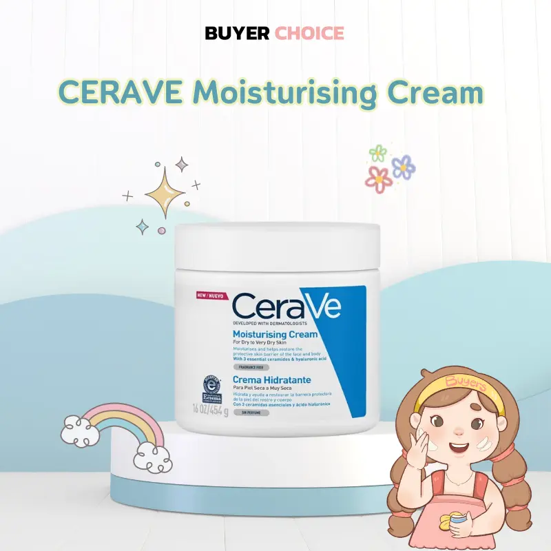 CeraVe Moisturizing Cream ครีมบำรุงผิวหน้าและผิวกายสำหรับผิวแห้งมาก มีจุดเด่นอยู่ที่การใช้เทคโนโลยี MVE (MultiVesicular Emulsion) ที่ช่วยให้เซราไมด์และส่วนผสมบำรุงผิวอื่น ๆ ปล่อยออกมาซึมเข้าสู่ผิวอย่างต่อเนื่อง ช่วยให้ผิวชุ่มชื้นยาวนานตลอดทั้งวัน ปราศจากน้ำหอมและสารระคายเคือง ทำให้เหมาะสำหรับผิวบอบบางแพ้ง่าย
