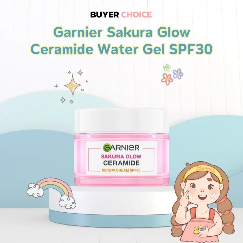 Garnier Sakura Glow Ceramide Water Gel SPF30 เป็นเจลบำรุงผิวหน้าสูตรพิเศษ ที่ผสานคุณค่าของเซราไมด์, ไฮยาลูรอนิค แอซิด, ไนอะซินาไมด์ และสารสกัดจากดอกซากุระ ช่วยเติมความชุ่มชื้นให้ผิว ฟื้นฟูเกราะป้องกันผิว และให้ผิวแลดูสุขภาพดี เปล่งประกา