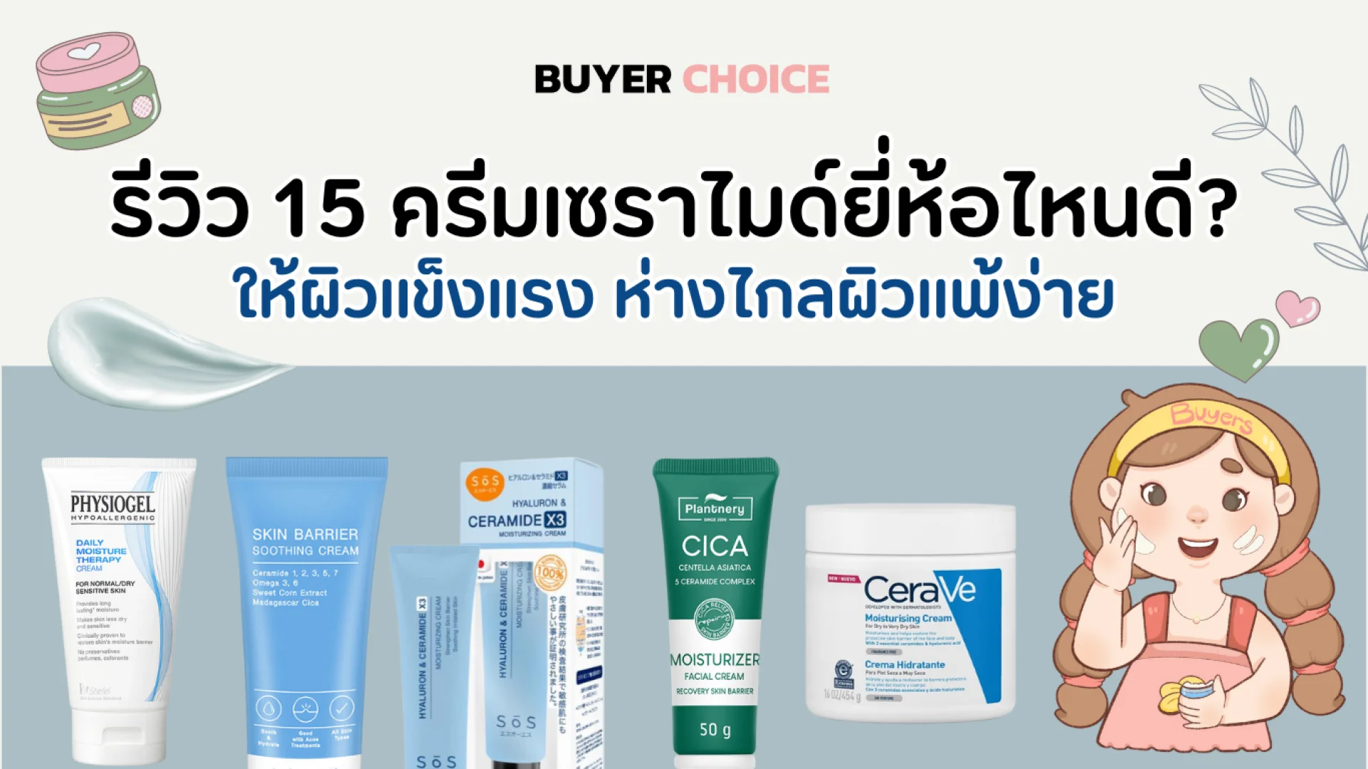 รู้สึกว่าผิวแห้งกร้านขาดน้ำอยู่ตลอดเวลาไหมคะ? นั่นอาจเป็นสัญญาณว่าเกราะป้องกันผิวของคุณอ่อนแอลง การเติมเซราไมด์ให้ผิวจึงเป็นสิ่งจำเป็น เพราะครีมเซราไมด์จะช่วยฟื้นฟูและเสริมสร้างเกราะป้องกันผิว ทำให้ผิวชุ่มชื้น อิ่มน้ำ และแข็งแรงขึ้น ลดโอกาสการเกิดผิวแห้งกร้านและการระคายเคืองวันนี้ BuyerChoice จะพาคุณไปเจาะลึก 15 ครีมเซราไมด์ยอดนิยม ที่จะช่วยให้คุณเลือกผลิตภัณฑ์ที่เหมาะกับผิวของคุณมากที่สุด เพื่อผิวสวยปัง และอ่อนเยาว์ ตามมาดูกันเลย